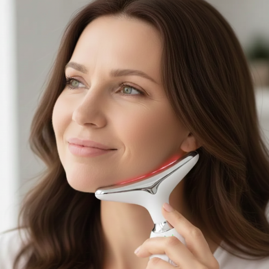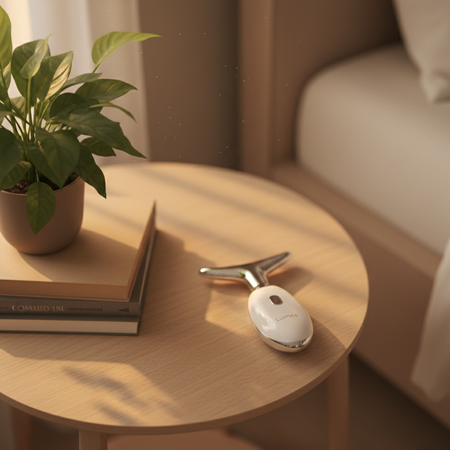 Lumee łączy delikatny masaż z terapią światłem, dzięki czemu codzienna pielęgnacja staje się przyjemnym rytuałem. Skóra staje się gładsza i jędrniejsza, kontury twarzy bardziej wyraźne, a naturalny blask i świeżość widoczne każdego dnia.